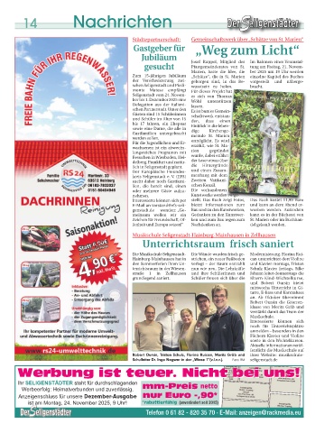 Anzeigenschluss für unsere Dezember-Ausgabe åìê=bìêç=JIVMG =