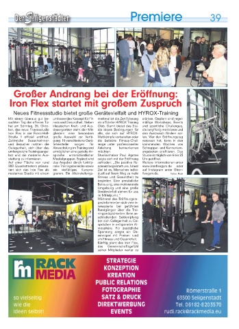 900 Quadratmetern präsen- nelle Trainingsbereiche sowie sonanz begeistert uns. Unser www.ironflexgym.de oder