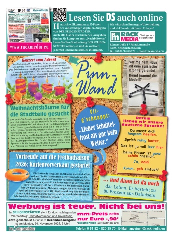 Anzeigenschluss für unsere Dezember-Ausgabe åìê=bìêç=JIVMG =